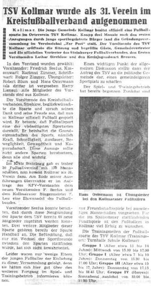 Die Zeitungen der Region berichten ausführlich über dieses Ereignis. Zu den Männern der ersten Stunde gehören als Spartenleiter Fritz Seefus, Hartmut Zimmer als Kassenwart, Jugendwart Hans Ostermann