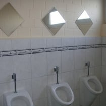 Kurios wird´s auf dem geräumigen Herren-WC. Denn über den Pissoirs prangt jeweils ein Spiegel und die Frage nach dem WARUM ist unausweichlich. Will man sich etwa beim Stand-Erleichtern angucken?
