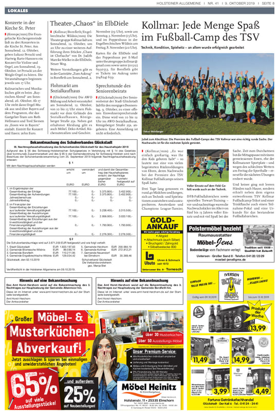 Über das Fußballcamp (Holsteiner Allgemeine vom 9.10.19)
